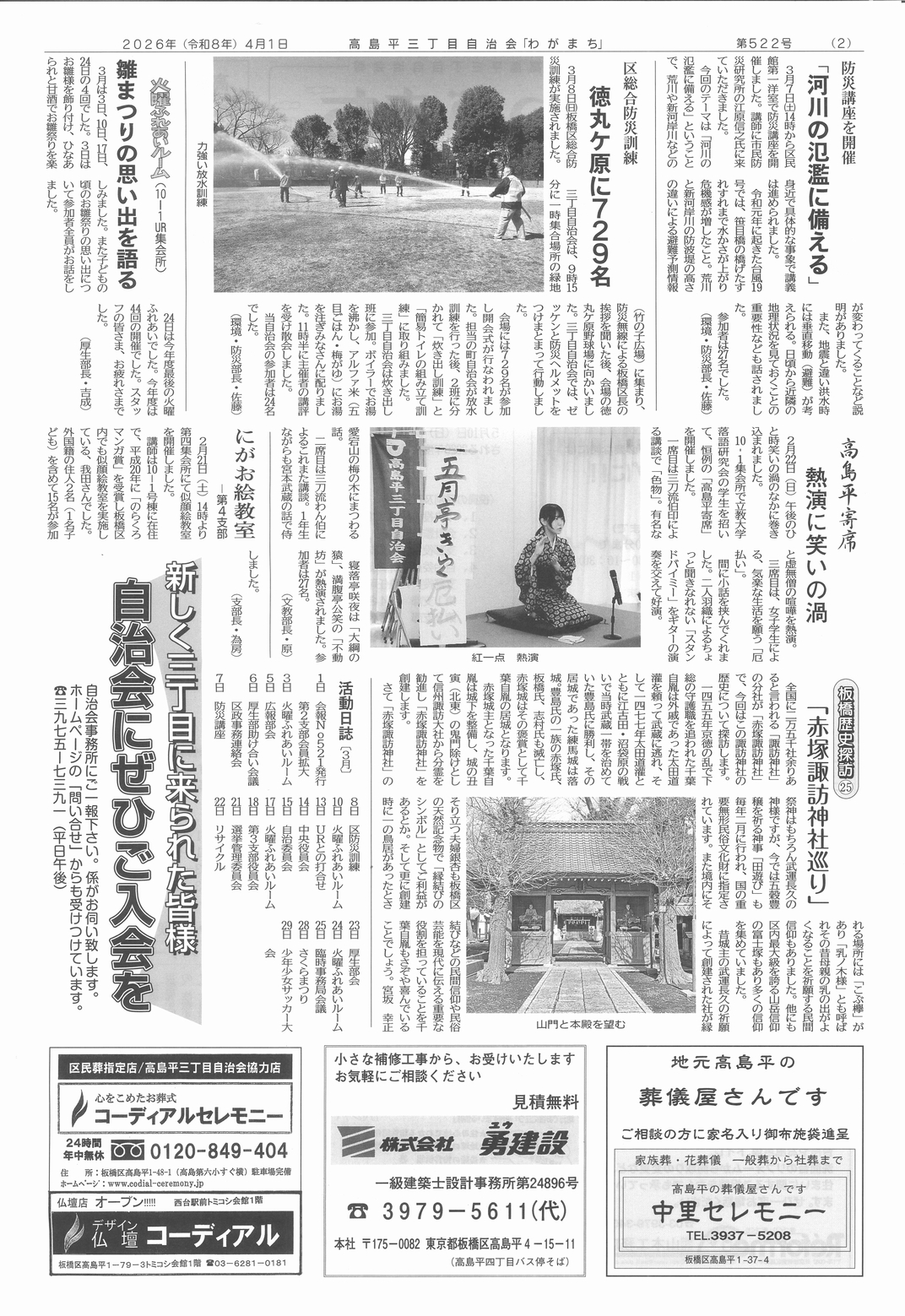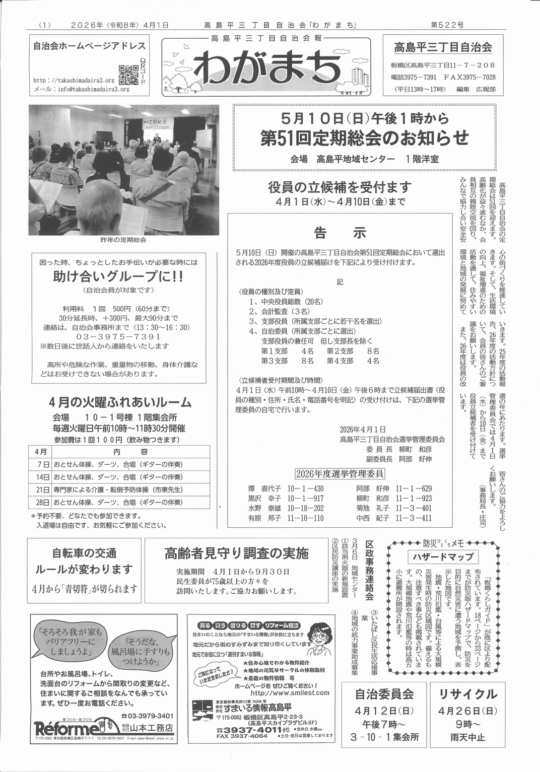 高島平三丁目自治会の自治会報「わがまち」の最新号です。